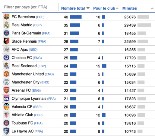 Parmi les meilleurs centres de formation sur les cinq et dix dernières années, l’OL accuse un petit recul sur la saison en cours en terme de joueurs passés par l’Académie. Mais sur les minutes jouées, le club lyonnais reste encore en haut.
