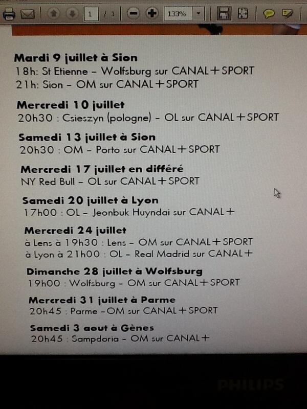 Voila en Bonus les horaires des matchs de l'OL